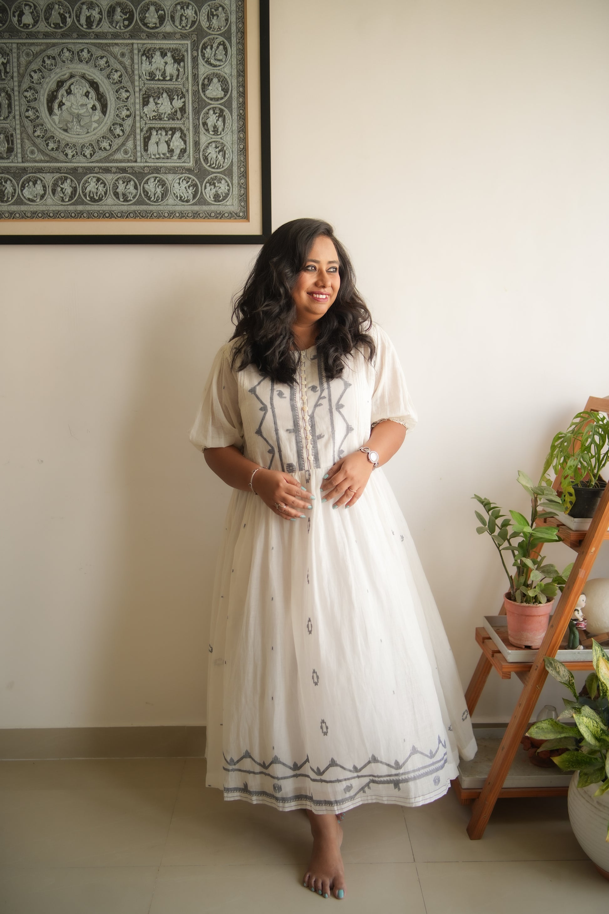 WHITE BORDER JAMDANI FROCK